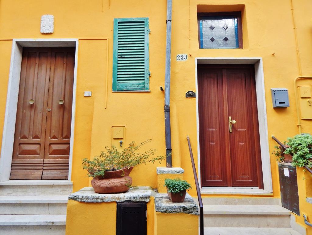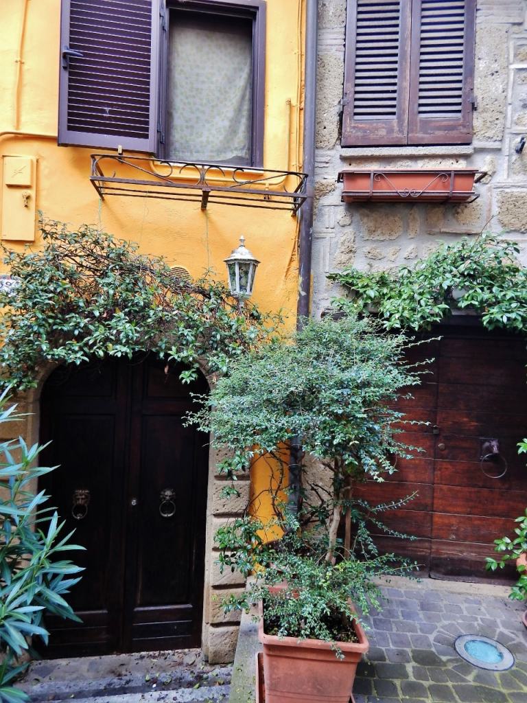 Today we encounter an orange house – pretty or an eye sore, you be the judge – and a usual variety of doors and alleys.