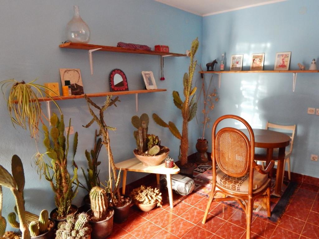 My ex built the shelves and collected most of these cactuses. Then he left them.
